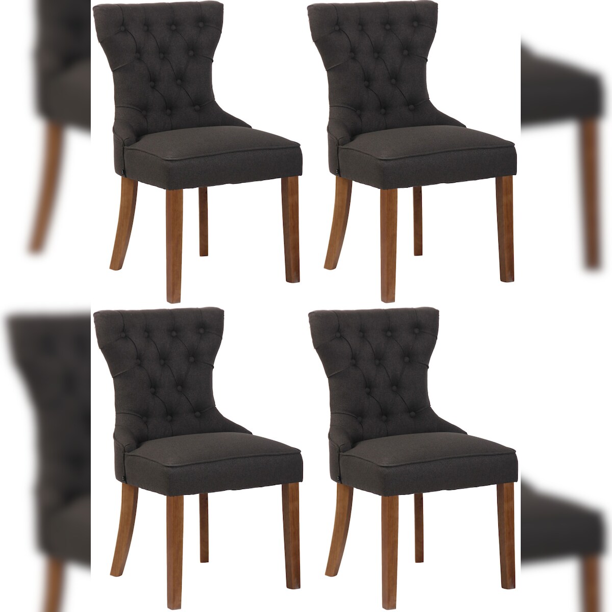 CLP 4er Set Esszimmerstühle Franca Stoff dunkelgrau/antik-hell