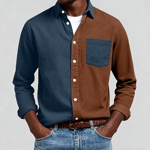 Per uomo Camicia Camicia casual Camicia di Velluto a Coste Camicia con Bottoni Blu Nero Verde militare Grigio Manica Lunga Blocco di colori Collo ripiegato Vacanza Casuale Tasche Multiple