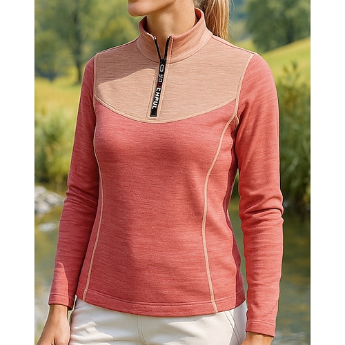 Per donna Felpa con zip corta Manica Lunga Collo alla coreana Top Esterno Calore Termico Inverno Poliestere Patchwork Rosa Viola scuro Viola chiaro Tennis Golf Corsa
