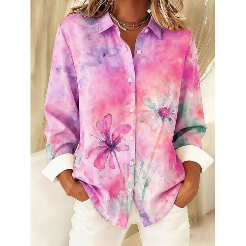 Per donna Camicia Blusa Fiore Moderno Manica Lunga Colletto a Camicia Top Regolari Quotidiano Ferie Uscire Stampato Blu Verde Estate