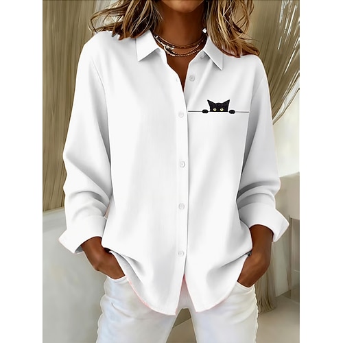 Per donna Camicia Blusa Tinta unica Moda Informale Manica lunga Colletto Top regolari Giornaliero Bottoni Bianco Rosa Cachi Estate Primavera