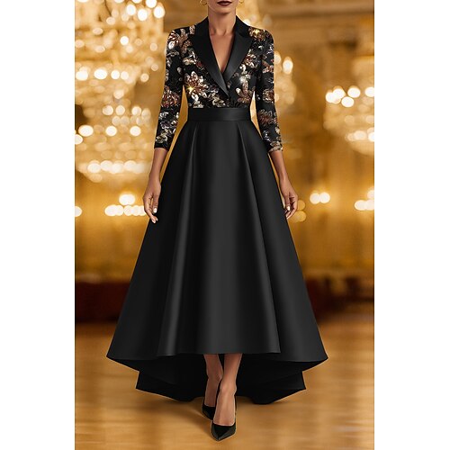Per donna Da donna Abito da smoking Linea ad A Abito alto-basso Matrimonio Formale Ospite di nozze Strass Elegante Manica 3/4 Manica 3/4 plissettata Lunghezza al pavimento Collo a scialle Revers
