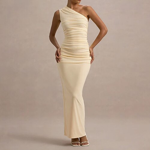 Per donna Abito Lungo Maxi Abito Vestito da Festa Abito da Cocktail Tubino Elegante Moda Moderno Festa serale Feste Cocktail party Vestibilità regolare Semplice Senza Maniche Monospalla Giallo Chiaro