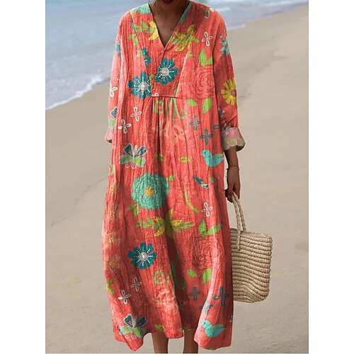 Per donna Abito maxi Abito a Tubino Casual Quotidiano Uscire Vestibilità comoda Floreale Grafico Manica Lunga Scollo a V Rosa scuro Viola Arancione Beige Estate Primavera
