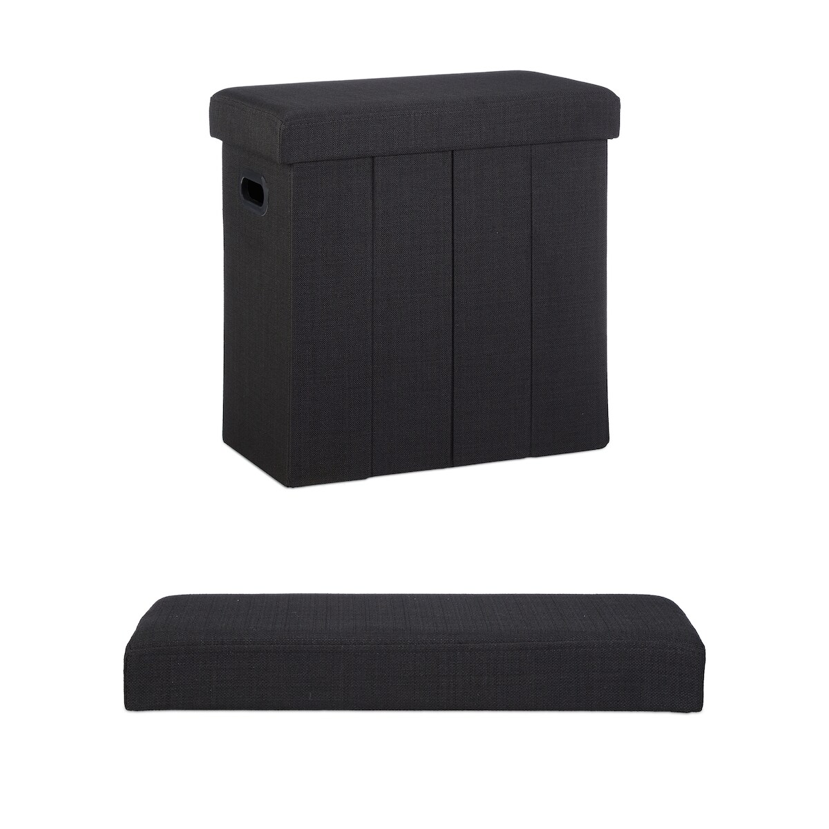 Relaxdays Faltbarer Sitzhocker, HxBxT: 49,5 x 46 x 25,5 cm, mit Stauraum, Griffe, Leinen, Polyester, MDF, schwarz