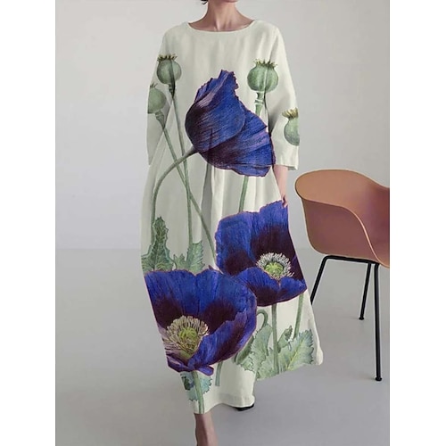 Per donna Abito maxi Abito a trapezio Abito aderente e svasato Festa Compleanno Casual Feste Ufficio Ospite di nozze Vestibilità comoda Floreale Grafico Manica Lunga Girocollo Giallo Rosso Blu Verde