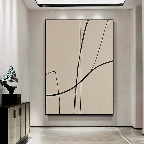 dipinto a mano astratto linea arte pittura beige marrone minimalista decorazione murale minimalista astratto beige nero galleria arte murale pittura