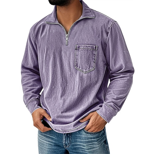 Per uomo Polo Polo con zip a un quarto Abbigliamento quotidiano Data Zip a un quarto Manica Lunga Moda Essenziale Semplice Cerniera Tasca Primavera Autunno Vestibilità regolare Nero Rosa Blu Verde