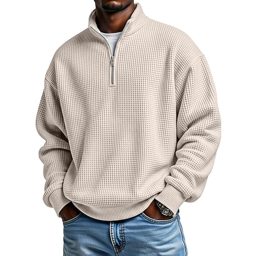 Per uomo Polo a nido d'ape Polo con zip a un quarto Giornaliero Per eventi Chiusura lampo quarto Manica lunga Di tendenza Moderno Liscio Tasche Primavera Autunno Standard Nero Bianco Blu marino