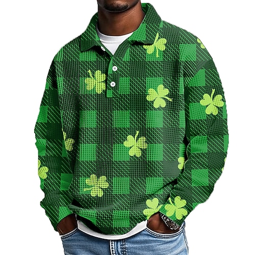 Per uomo Tarten Magliette Polo a Nido d'Ape Manica Lunga Magliette polo Camicie con Colletto Business Casual Affari Abbigliamento da lavoro Abbigliamento quotidiano Stampa 3D Bottoni Primavera