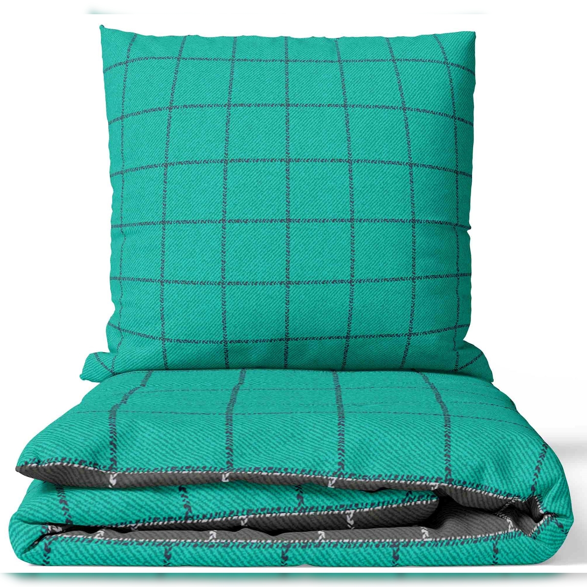 Leonado Vicenti Baumwolle Bettwäsche 240x220 cm Petrol Grau kariert Wendeseite Reißverschluss 3 tlg