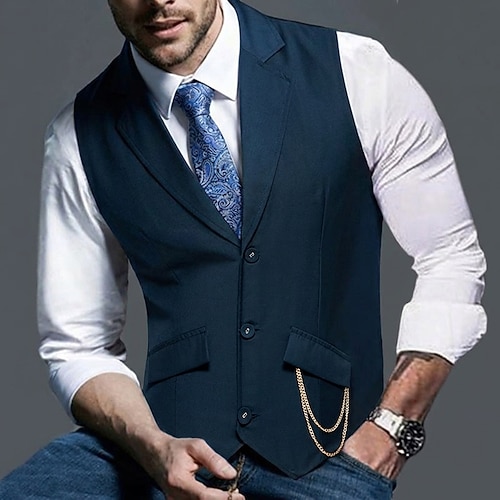 Da uomo Gilet Casuale Quotidiano Affari Moda Affari Tutte le stagioni Tasca TR Di tendenza Tinta unita Monopetto Dentellato Vestibilità su misura Nero Borgogna Blu marino scuro Gilet