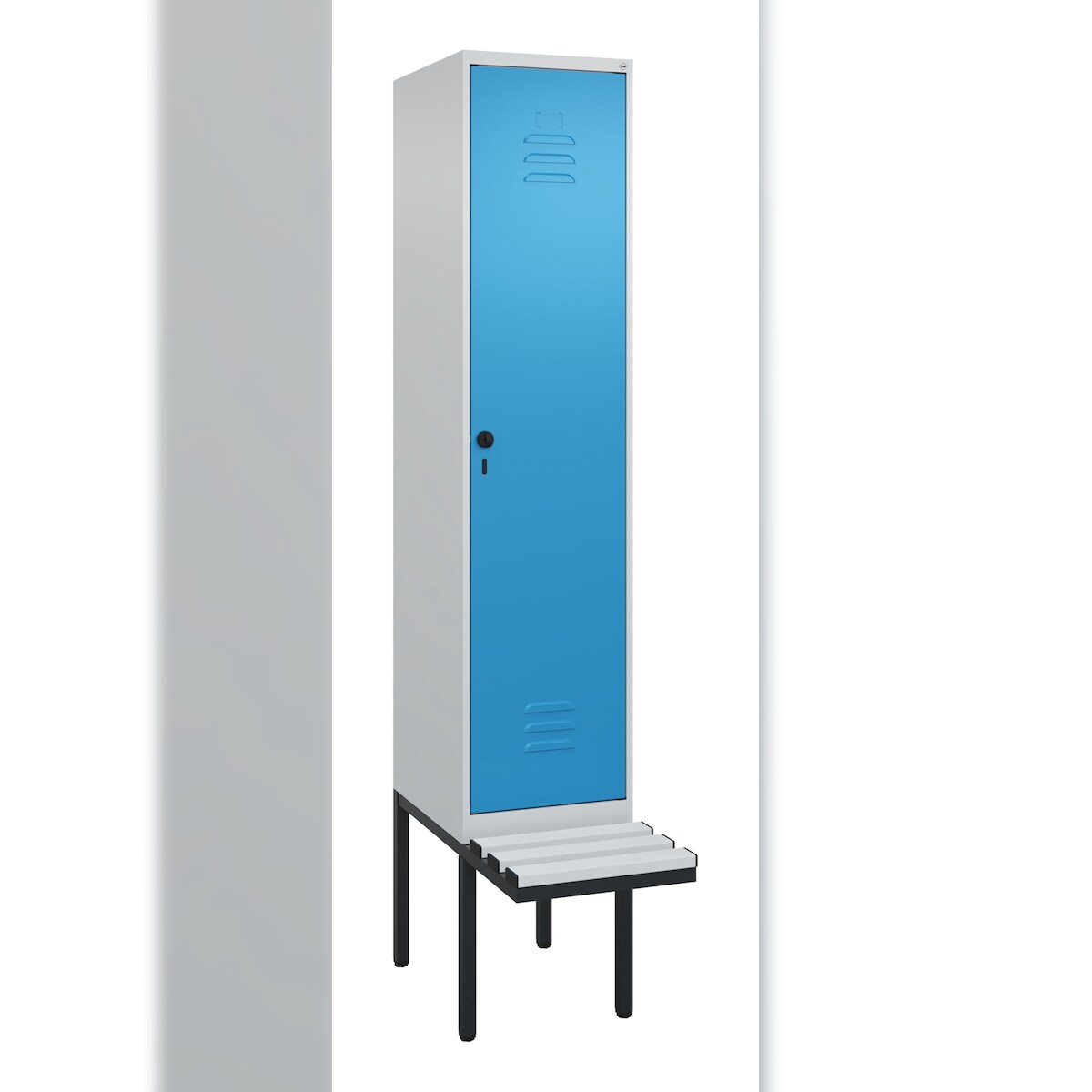 C+P Spind Classic PLUS, Kunststoff schwebende Sitzbank, 1 Abteil, HxBxT 212x40x82cm, Sicherheitsdrehriegel, Hellgrau/Lichtblau von PROREGAL
