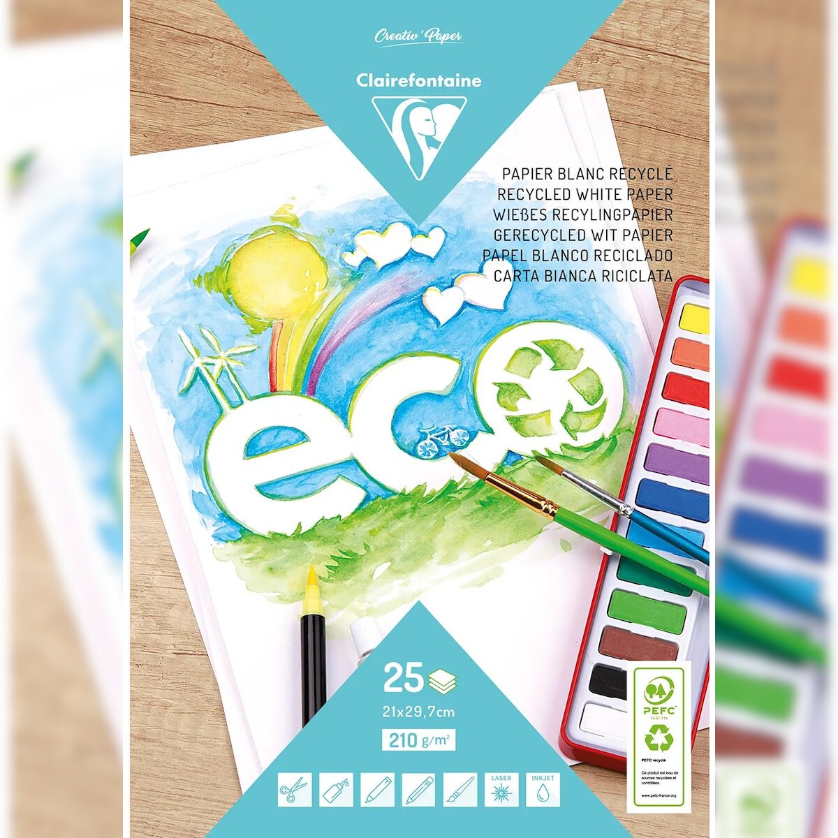 Clairefontaine 5x Weißes Recyclingpapier, Block mit 25 Blatt A4, 210g - Weiß 26513C