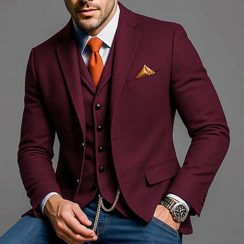Per uomo BlazerGiletPantaloni eleganti Blazer Affari Lavoro Matrimonio Moda Streetwear Autunno Inverno Tergal Semplice 3 pezzi Monopetto Giacca Nero Champagne Rosa Kaki