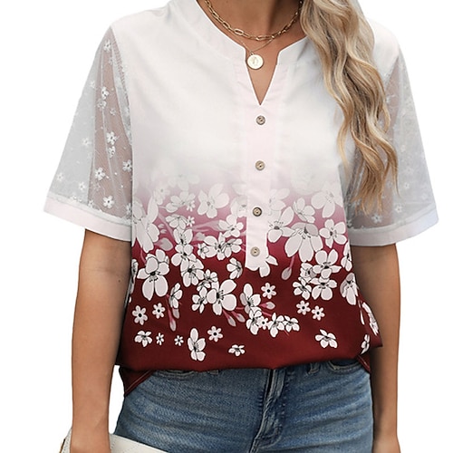 Per donna Top estivi Blusa Top Eleganti Floreale Grafico Semplice Elegante Vintage Quotidiano Manica Corta Scollo a V Top Regolari Quotidiano Lavoro Ferie Arricciato Pizzo Patchwork Blu Verde