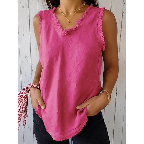 Per donna Blusa Tinta unica Semplice Elegante Classico Casual Senza Maniche Manica 3/4 Scollo a V Top lunghi Quotidiano Pizzo Blu Bianco Rosa Estate Primavera