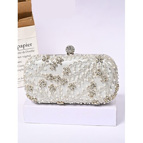 pochette da sera da donna con perline in poliestere: design elegante con tracolla a catena, diverse opzioni di colore per occasioni formali e nuziali