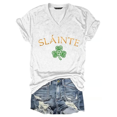 T-shirt da donna per il giorno di San Patrizio grafica shamrock vintage alla moda classica maniche corte scollatura a V tops regolari per uscite quotidiane stampa nera bianca rosa viola verde estate