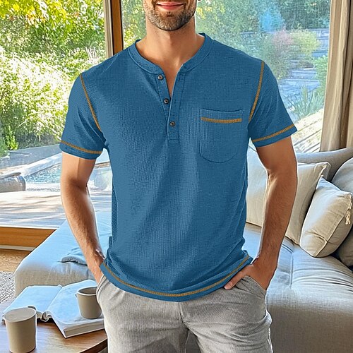 Per uomo Camicia Henley Waffle Magliette Manica corta Bottoni Tasche Color Block Henley Esterno Informale Giornaliero Estate Blu Marrone Grigio Maglietta Henley