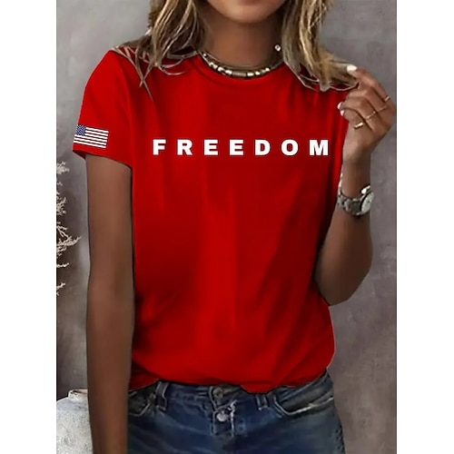 Per donna Maglietta Grafico Lettera Vintage Elegante Classico Manica Corta Girocollo Top Regolari Quotidiano Weekend Stampato Nero Rosso Blu Estate Primavera