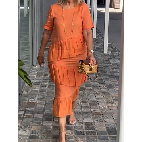 Per donna Abito maxi Abito a trapezio Abito Estivo Casual Quotidiano Vestibilità comoda Semplice Manica Corta Girocollo Blu Bianco Arancione Verde Estate