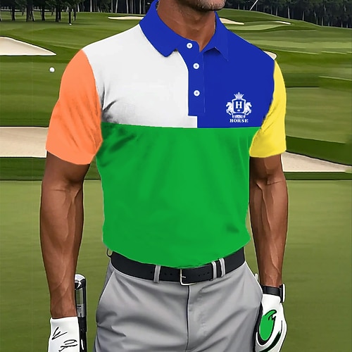 Per uomo Geometrico Golf Polo Polo Sportivi Manica Corta Magliette polo Camicie con Colletto Casual Athleisure Bottoni Estate Rosso Blu Verde