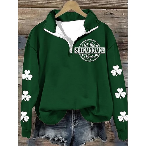 Felpe con zip da donna per il giorno di San Patrizio con grafica trifoglio moda casual a maniche lunghe mezza zip top regolari casual stampa con cordino nero verde primavera autunno