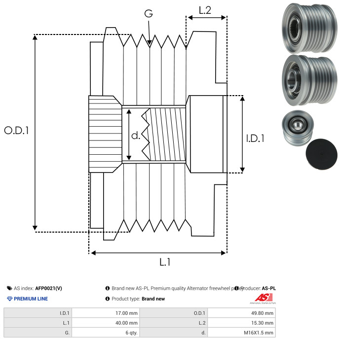 AS-PL Generatorfreilauf AFP0021(V) für JEEP MERCEDES-BENZ CHRYSLER 05117591AA A6111550515 6111550515