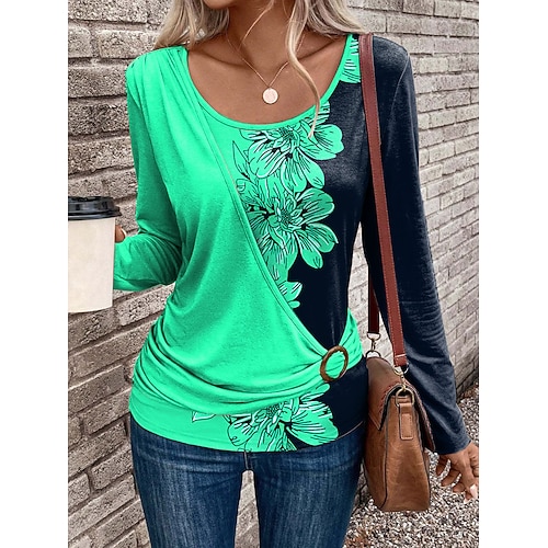 Per donna Maglietta Floreale Grafico Elegante Casual Manica Lunga Girocollo Top Regolari Quotidiano Patchwork Stampato Rosa Blu Arancione Verde Estate Autunno Inverno