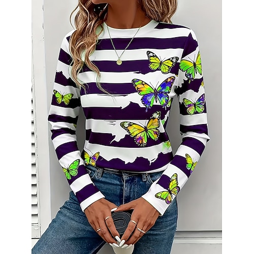 Per donna Maglietta Semplice Vintage Elegante Classico Manica Lunga Girocollo Top Regolari Quotidiano Stampato Blu Nero Bianco Giallo Rosa Primavera Autunno Inverno