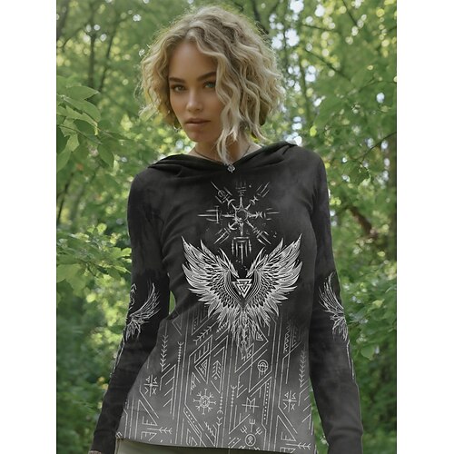 Per donna Maglietta Grafico Piante Vintage Elegante Classico Manica Lunga Con Cappuccio Top Regolari Quotidiano Weekend Stampato Blu Arancione Verde Grigio Primavera