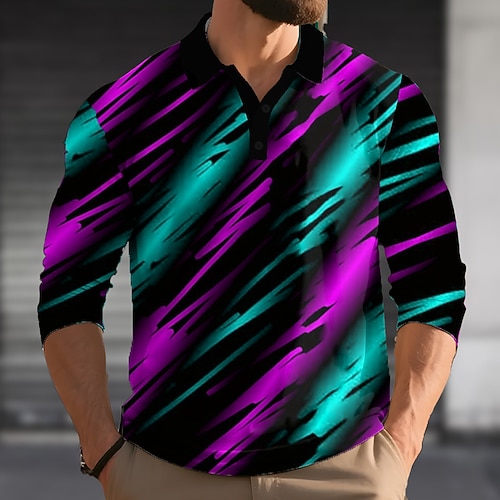 Per uomo Blocco di colori Astratto Polo Manica Lunga Magliette polo Bavero Casual All'aperto Streetwear Athleisure Abbigliamento quotidiano Stampa 3D Bottoni Primavera Autunno Inverno Blu Viola Verde