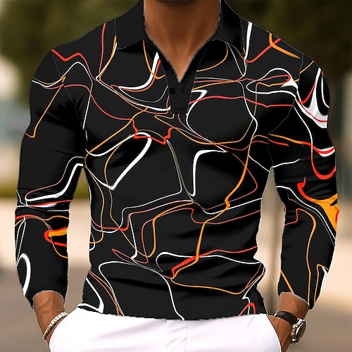 Per uomo Geometrico Linea Polo Manica Lunga Magliette polo Bavero Casual Streetwear Athleisure Abbigliamento quotidiano Stampa 3D Bottoni Primavera Autunno Inverno Nero Bianco Rosso