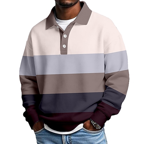 Per uomo Strisce orizzontali Magliette Polo a Nido d'Ape Polo da Rugby Testurizzato Manica Lunga Magliette polo Bavero Casual Athleisure Abbigliamento quotidiano Stampa 3D Primavera Autunno Inverno
