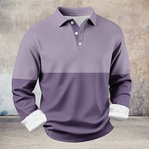 Per uomo Blocco di colori Geometrico Polo Camicie termiche Manica Lunga Magliette polo Bavero Casual Athleisure Ferie Abbigliamento quotidiano Stampa 3D Primavera Autunno Inverno Blu Rosa Viola