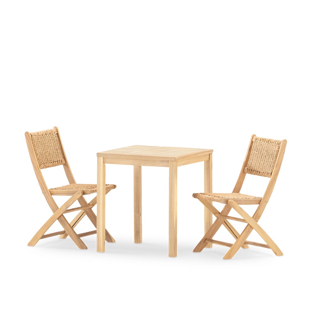Set da di tavolo 2 sedie in legno e ceramica beige 65x65