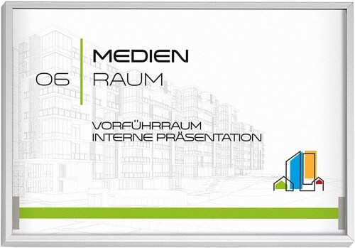 Madrid Silver Line Türschild A5 quer | Alu Rahmen silber eloxiert | entspiegelte Abdeckung | einfache Montage Kleben oder Schrauben | Schild Büro