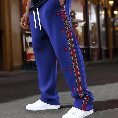 Per uomo Motivi a griglia / plaid Stampa di bottoni finti Pantaloni Pantaloni casual Misura del girovita medio Vita elastica con coulisse Casual All'aperto Ferie Pantaloni a gamba dritta Primavera