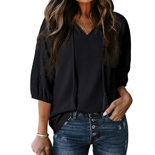 Per donna Blusa Semplice Elegante Manica 3/4 Scollo a V Top Regolari Quotidiano Ferie Uscire Patchwork Traforato Nero Bianco Verde chiaro Rosa Blu marino Primavera Autunno