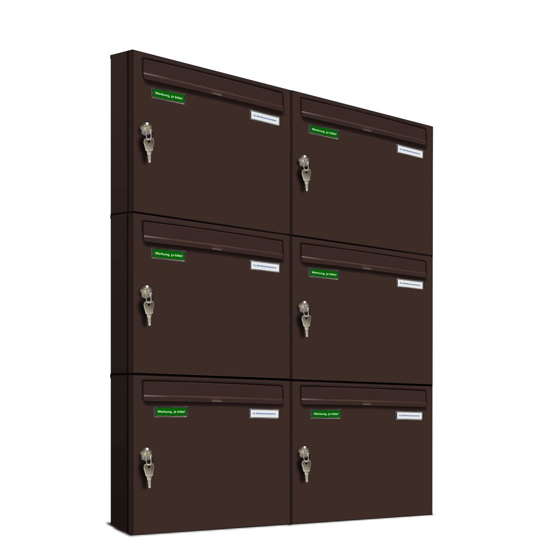AL Briefkastensysteme 6 x Basic Wand Briefkasten in RAL 8017 Schokoladen Braun für Post A4, wetterfest, Artikelnummer: 431P6EA2P8017