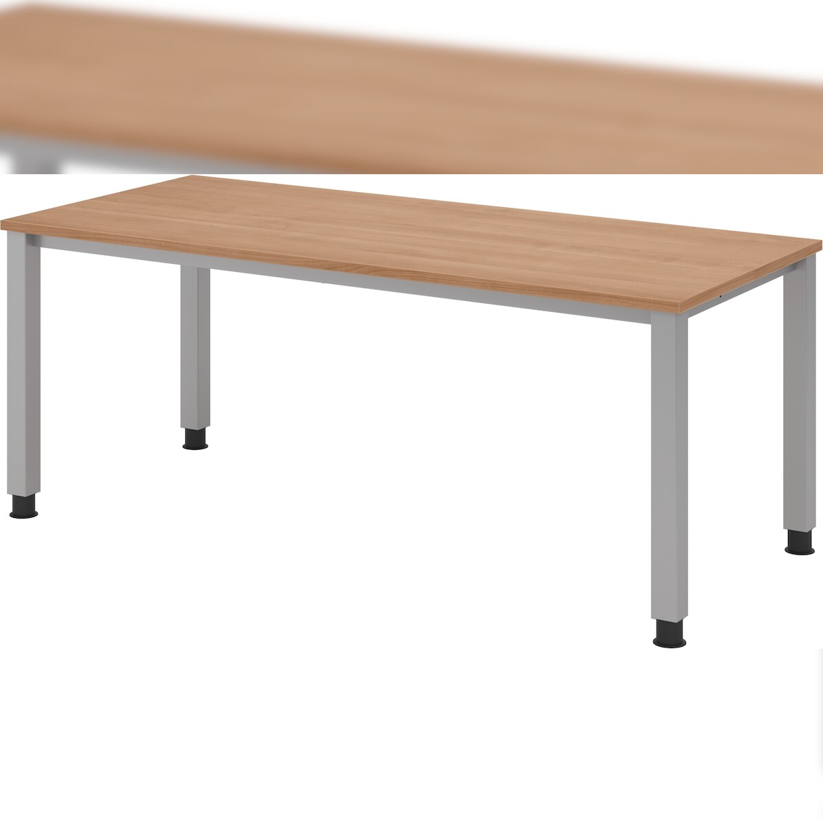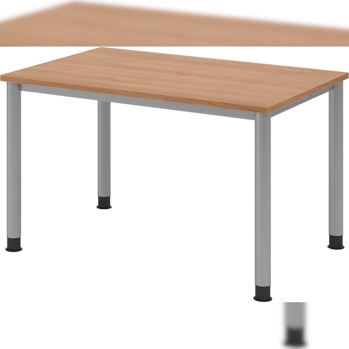 bümö höhenverstellbarer Schreibtisch H-Serie 120x80 cm in Nussbaum, Gestell in Silber - PC Tisch klein für's Büro manuell höhenverstellbar,