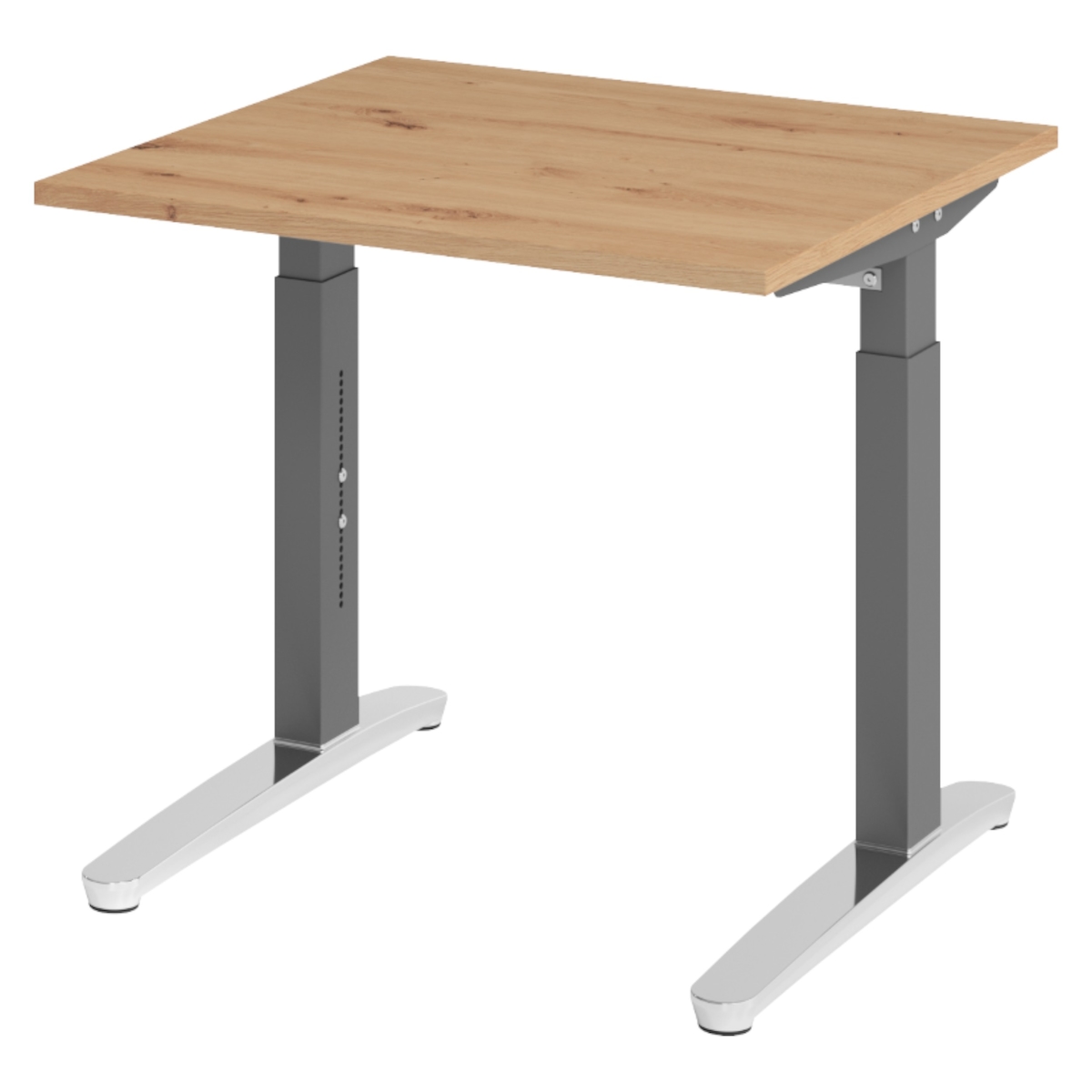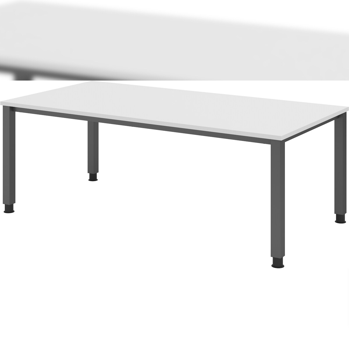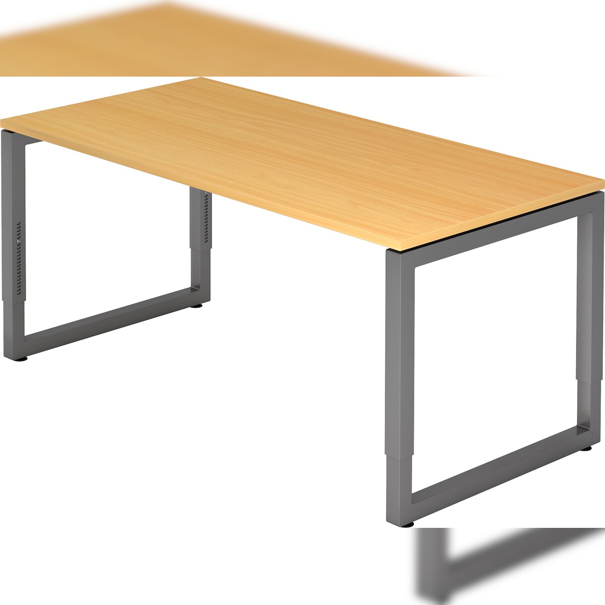bümö höhenverstellbarer Schreibtisch U-Serie 180x80 graphit, Gestell in Silber - großer PC Tisch für's Büro manuell höhenverstellbar, Computertisch