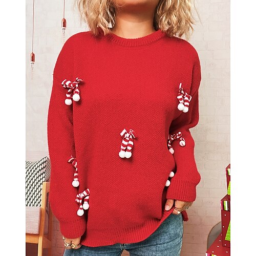 Per donna Felpa Maglione Pom Pom regalo di Natale Streetwear Floreale Girocollo Lavorato a maglia Stampato Manica Lunga Top Regolari Maglia Natale Ferie Uscire Nero Rosso Autunno Inverno