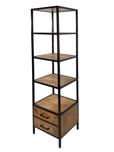 Amagohome Bücherregal Vitrine Bücherbord 40x180x40 cm 2x Schubladen Metall Gestell Holzböden massiv