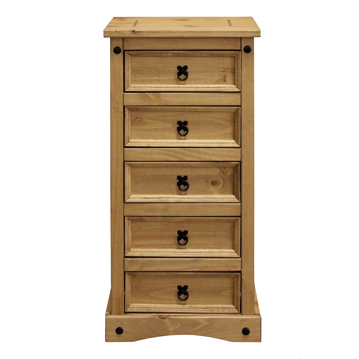 Möbilia Hoch-Kommode | mit 5 Schubladen | Kiefer-Holz | B 53 x T 39 x H 109 cm | 19020065 | natur gewachst | Serie KOMMODE