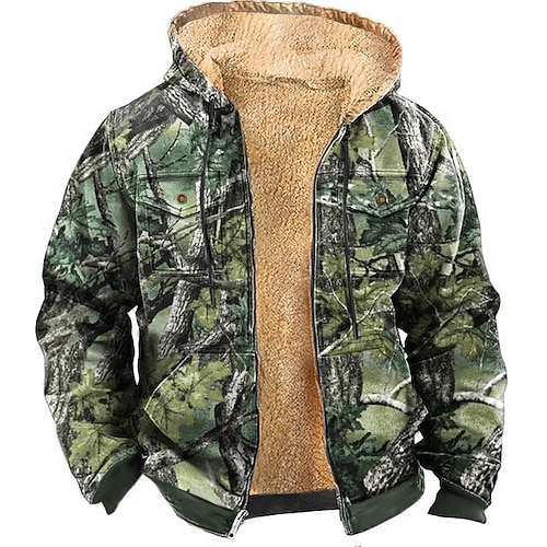 Per uomo Mimetico Pile Felpa con Cappuccio Giacca di pelle Felpa Moda Cool Quotidiano Vintage Retrò Manica Lunga Con Cappuccio Caccia Blu Viola Verde Verde militare Cerniera Tasca Autunno Inverno