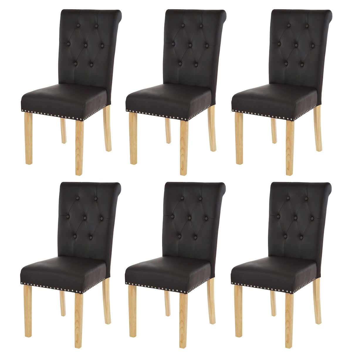 Mendler 6er-Set Esszimmerstuhl Chesterfield II, Stuhl Küchenstuhl, Nieten ~ Kunstleder, coffee, helle Beine