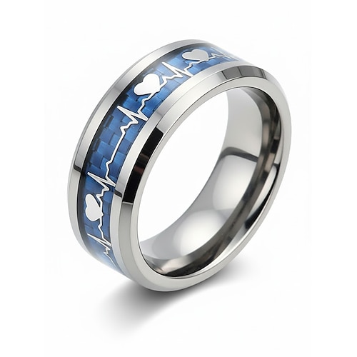 anello da uomo in acciaio inossidabile con battito cardiaco e design a cuore, disponibile in più colori: perfetto per San Valentino e per l'uso quotidiano