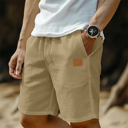 Per uomo Shorts Shorts di Lino Pantaloncini Estivi Shorts da Spiaggia Patchwork Coulisse Elastico in vita Semplice Comodità Traspirante Lunghezza al ginocchio All'aperto Quotidiano Ferie Moda Hawaiano